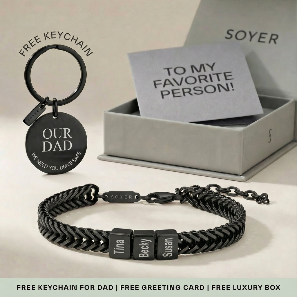 The Dan Personalized Dad Bracelet – Gift Set is designed for fathers who carry what matters most with them every day.