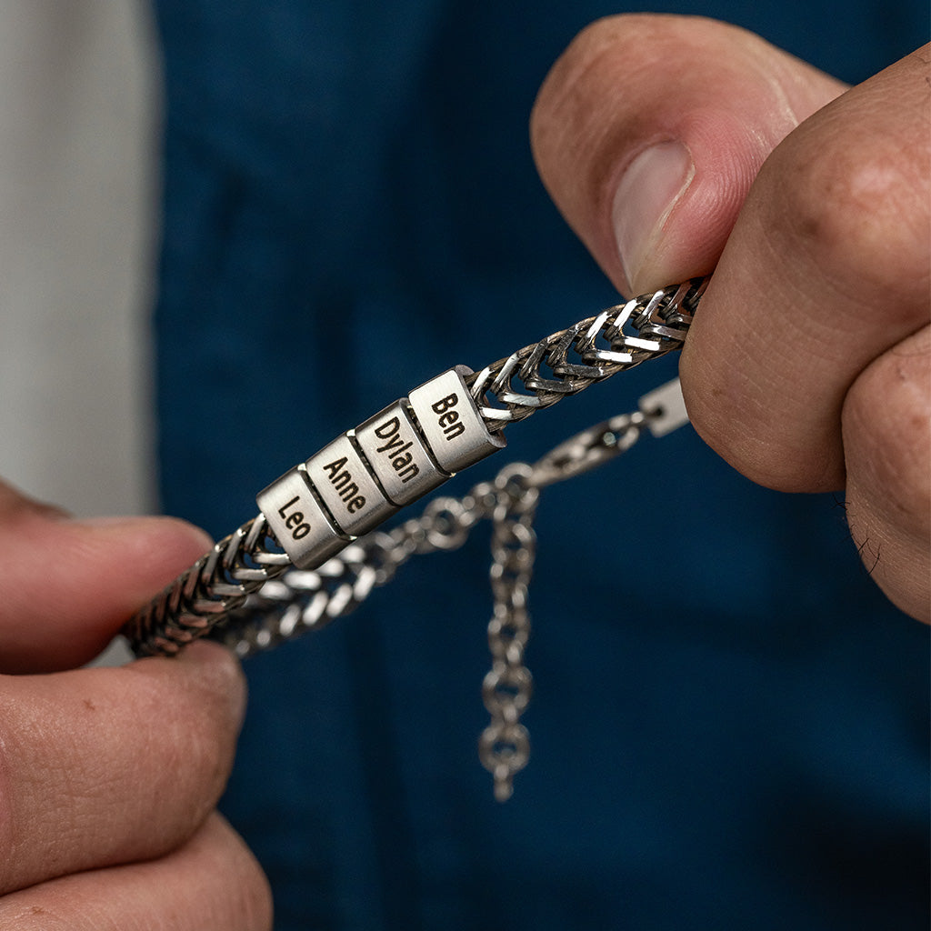 The Dan Personalized Dad Bracelet – Silver Gift Set is designed for fathers who carry what matters most every day.