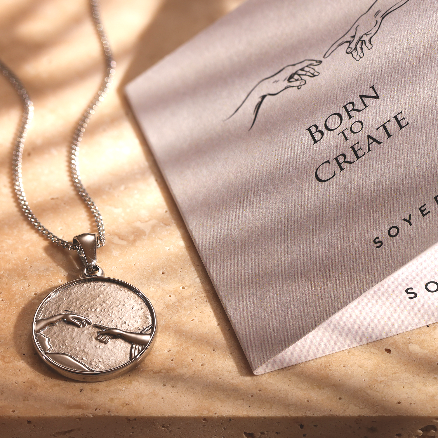 Inspired by Michelangelo’s masterpiece, this necklace serves as a powerful reminder that creation is not just a moment in the past, but a force that resides within you.