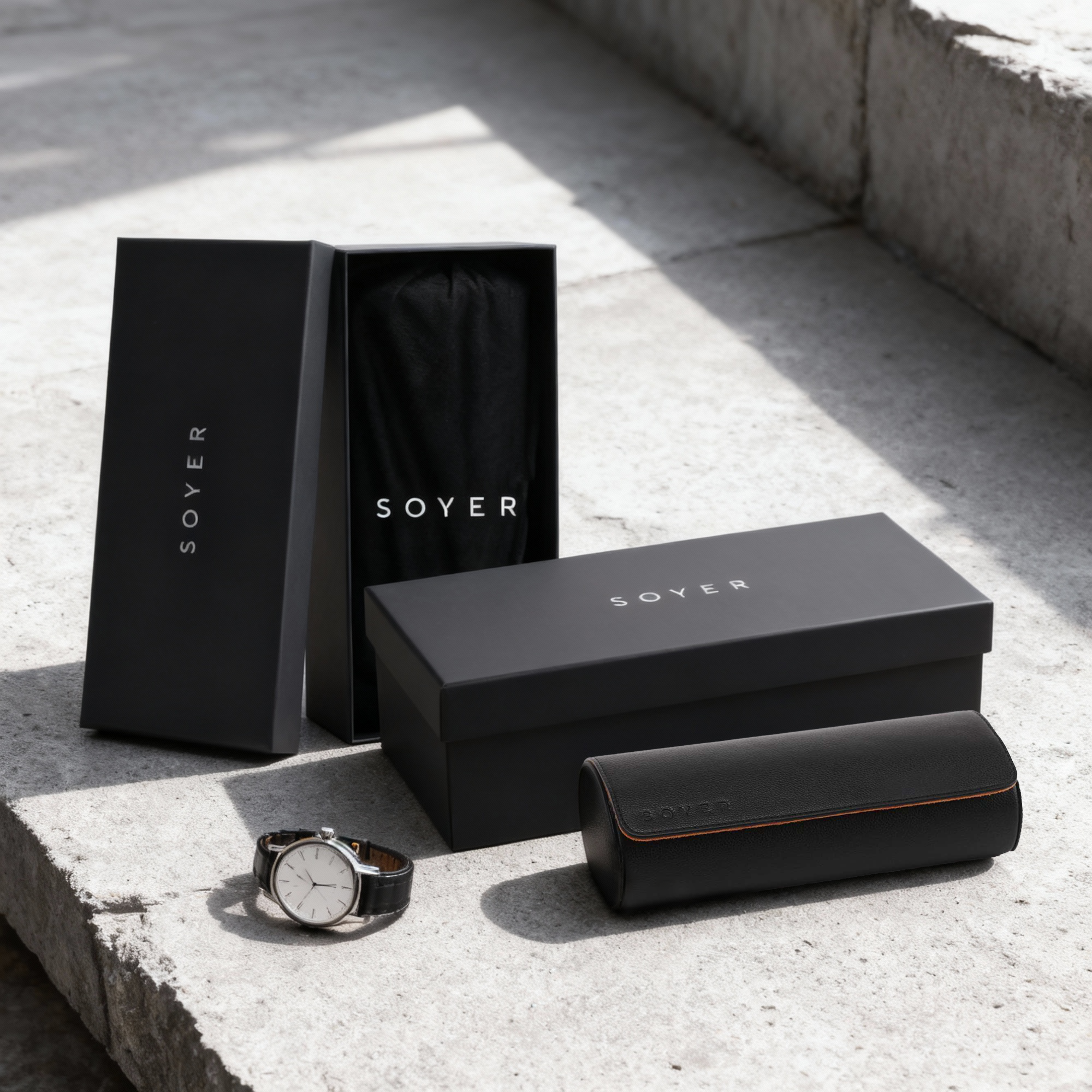 Travel in style with the SOYER Watch Roll, crafted to protect and showcase your favorite timepieces. Designed with three cushioned slots, it securely holds your watches in place while preventing scratches and damage. The exterior, made from premium black PU leather, pairs beautifully with the soft velvet interior for a refined, timeless look. Compact and durable, it’s the perfect companion for business trips, vacations, or elegant home storage—keeping your collection safe, organized, and ready wherever you go.