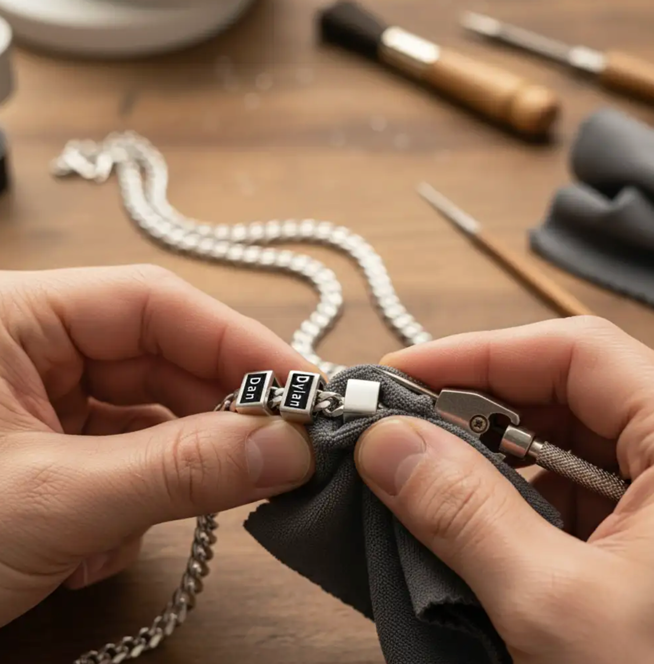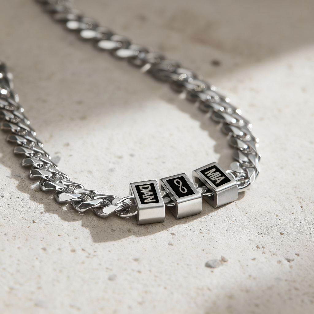 Each piece is carefully engraved with precision, making every detail clear and beautiful.Crafted from durable, premium materials, this necklace is made to withstand everyday wear.A timeless accessory that carries your loved ones’ names close to your heart.