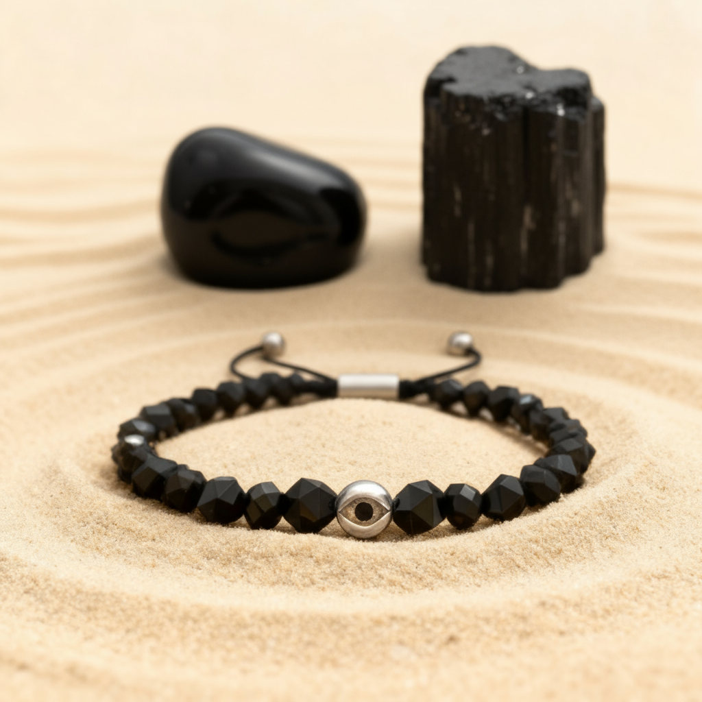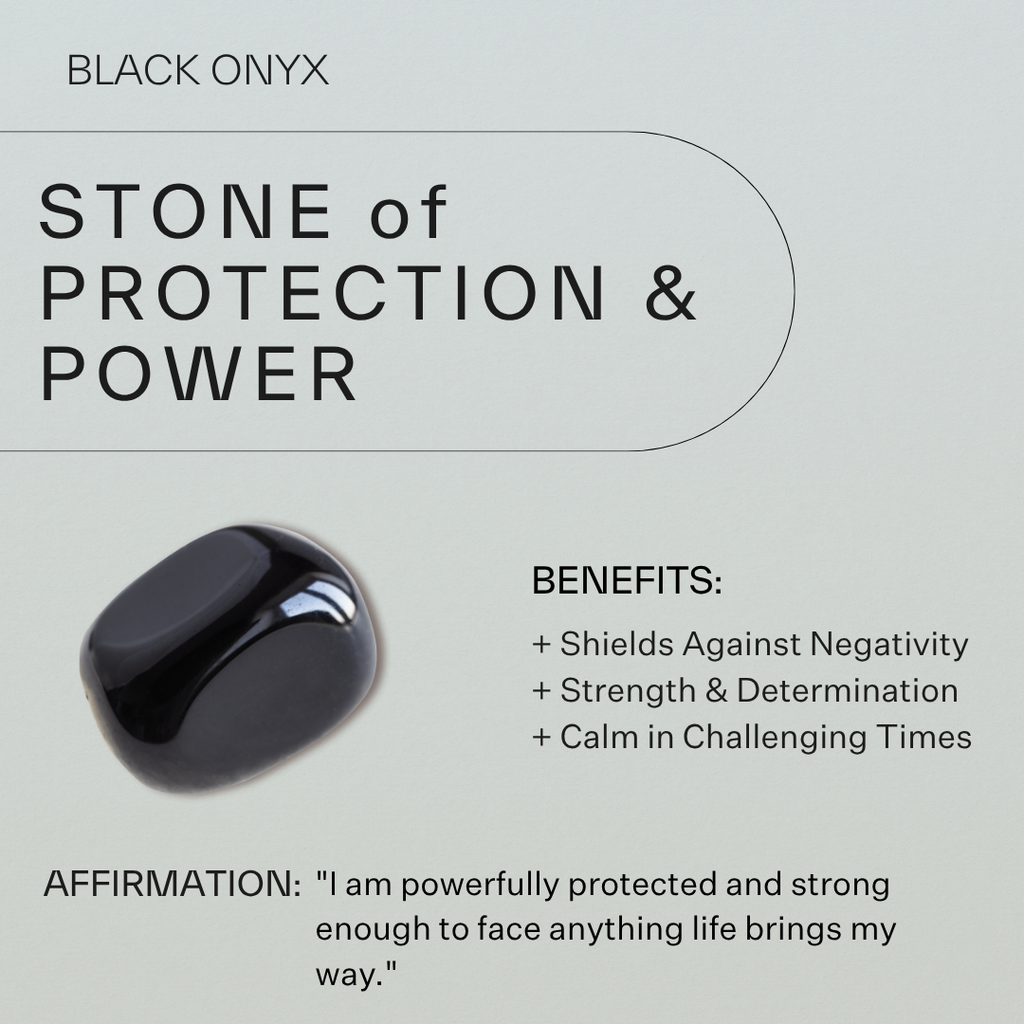 Feel powerfully protected and strong enough to face anything life brings your way. This bracelet combines Onyx and Tourmaline stones, each chosen for their grounding and protective energies. Onyx strengthens inner resolve and focus, while Tourmaline shields against negativity and external stress, creating a harmonious balance of strength and protection. Finished with a sleek and adjustable clasp, it’s designed for those who navigate life with resilience and clarity.